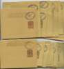 POSTAL HISTORY: 1950-1954 Collection of handstamped newspaper wrappers, ¼d in black (HG9a) mint, 13 others CTO each with different Bermuda town cancels, we note Somerset Bridge, Devonshire South, etc., mix of purple and black inks. Similar selection of ¾d handstamped wrappers, 1 mint in purple ink (HG9J), 10 CTO with different Bermuda town cancels (25)