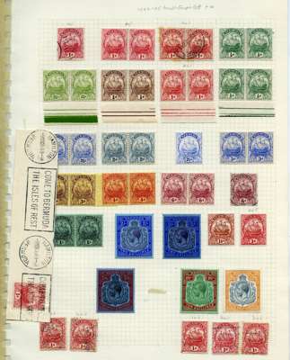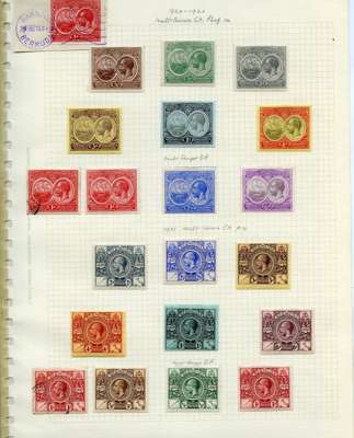 1918-32 mainly mint collection (73) on three pages, with watermark MCA 2/- Plate single and 2/6d, 5/- and 10/- Plate pairs, the 10/- with foxed spots on selvedge and one stamp; both Tercentenary sets mint; Script Caravels (mostly pairs) and 2/- (2), 2/6d, 10/- and 12/6d. Most appear to be first hinge, a useful group