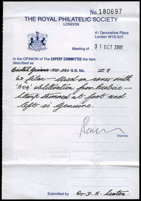 GB USED ABROAD: 1859 6d lilac (left and bottom margins scissors separated), on cover to London tied with “A04” of Berbice, Berbice double arc on reverse (JU 8 1859), London Paid c.d.s. on front, RPS cert. 2001, fine and scarce, SG Z8