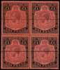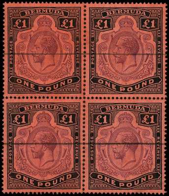 1927 £1 purple and black/red, block of four, (Pos. 39-40, 51,52), Bearing single line pen strokes denoting CANCELLED invalidation, full unmounted o.g. An interesting item, scarce as a multiple. SG 55var