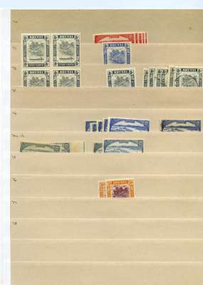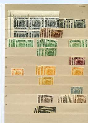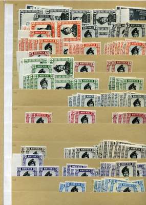 1924-52 mainly KG VI stock on manila stocksheets, nothing exceptional but a good showing of lower and middle values, condition fine save for the inevitable brown gum on some of the earlies; also a few Occupation issues. STC £968 u/m, £1730 m/m, £168 fu