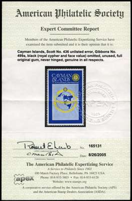 1980 Rotary 75th Anniversary 50c error with black omitted (Royal Cypher and face value), APS cert. (2005), unmounted mint, scarce. SG 499a, £325