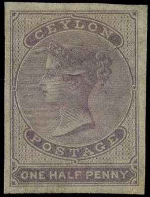 1864 ½d dull mauve imperf, wmk. inverted crown CC, unused, ex “Gem Collection of Ceylon” (2021), fine, SG48 var