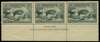 1932 Sydney Harbour Bridge, 5s blue-green, marginal strip of three with John Ash imprint, large part o.g; very fine. SG 143