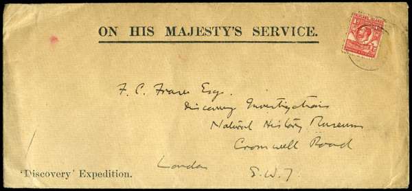 Collection formed by a member of the Antarctic “Discovery Investigations” Expedition on board the HMS Scorsby, includes 1930 (circa) OHMS ‘Discovery’ Expedition cover sent from the Falklands Islands to the Natural History Museum, group of later correspondence from the Falklands to the UK, of note 1968 cover with “Carried on Hovercraft SRN6” handstamp. Red Simplex Album with stamps and covers 1883-1964: 1898 2s6d and 5s (mint), 1933 set to 2s6d, 1938 values to £1 (used), 1952 values to £1 (used), 1960 set to £1 on covers (6) cancelled with Fox Bay CDS on first day of issue. Also some pages with Australia and New Zealand, we note 1948 registered cover from Macquarie Island with cachet “Australian National Antarctic Research Expedition 1947” to the Natural History Museum, London. Mixed condition but an intriguing lot with many interesting pieces.