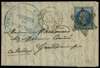 Twenty-seventh Balloon of the Siege: 1870 entire letter to Grand Camp, Calvados, franked by Napoleon III 20c Empire, well tied by Star mark with Paris R. St Antoine cds for 6 Nov, with additional Republique Francis Poudres et Salpetres cachet in blue (Munition Office), carried by the Balloon 'Gironde' which departed Paris 8 Nov, backstamped by Grand Camp arrival mark for 9 Nov, very attractive and scarce with cachet, Roumet Certificate (2005)