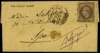 Sixty-third Balloon of the Siege: 1871 printed Gazette des Absents, lettersheet to Spa, Belgium franked by Napoleon III 30c Empire, tied by Star mark and Paris Place de la Bourse cds for 18 Jan, carried by the Balloon 'General Bourbaki' which departed Paris on 20 Jan, backstamped with France despatch mark and Spa, Belgium arrival for 25 Jan, a fine and attractive item sent a week prior to the French surrender and the end of the Siege.
