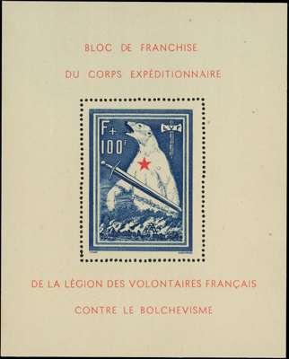 1941 French Legion Polar bear souvenir sheetlet, F+ 100 Fr. unmounted o.g; very fine and highly attractive. Michel I €800