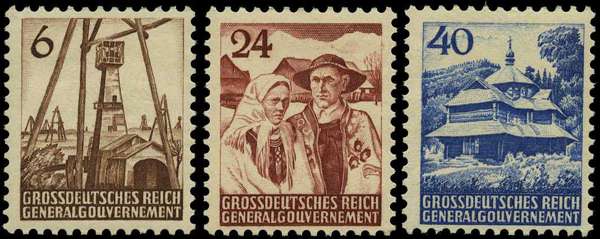 1944 General Gouvernement 'Goral' unissued set of three, 6 (Gr) to 40 (Gr) full unmounted o.g; very fine and scarce, intended as replacements for the Hitler definitives, however after the fall of the General Government to the Red Army, the series was never completed. Michel I-III €1,800