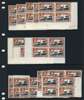 1942-51 2/- perf 13 mint multiples with Plate blocks (seven including FP2) and pair, three imprint blocks, severed block with R1/3-4 re-entries; nearly all unmounted, good range of printings and a very difficult lot to duplicate these days. SG 128b