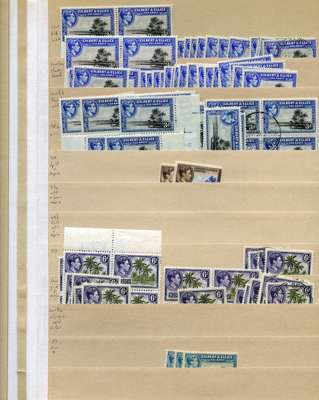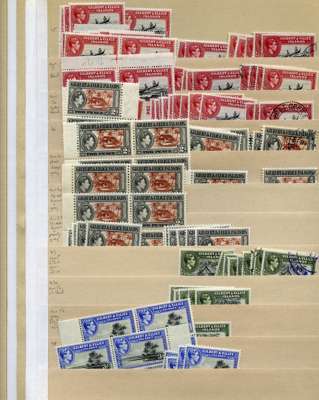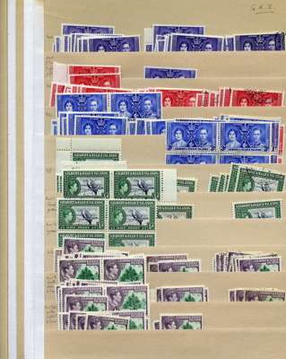 KG VI stock on manila stocksheets, light on higher definitive values but with a strong representation of low and middle-value shades, including per CW catalogue. STC £366 u/m, £691 m/m, £181 fu