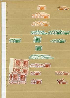 1924-52 KG VI stock on manila stocksheets, generally tidy with identification seemingly OK and condition mostly good. Not at all balanced but with some decent quantities of better stamps. STC £1617 u/m, £8820 m/m, £1256 fu
