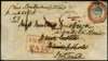 1854 4a blue and red, 4th printing, Head Die III, Frame Die II, cut-to-shape, franked on re-directed 1856 envelope by 'B/1' octagonal, annotated 'Via Southampton/March 22nd/No 3', 'INDIA/PAID' boxed h/s in red and London 'MY 4/1856' transit below', the reverse with red dispatch cds, Blair Atholl (5.5) arrival and re-directed Dunkeld (5.6) arrival ds both in green. An attractive cover. SG 23