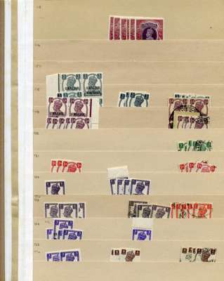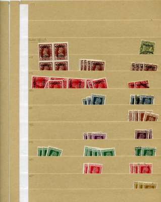 KG VI stock on manila stocksheets, including a few better with SG 115 x 6 mint and a few other better values. The condition mostly fine with good gum. STC £164 u/m, £596 m/m, £99 fu