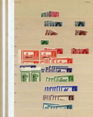 KG VI stock on manila stocksheets, main value in mint middle values but includes SG 115 used (slightly smudged cancel). STC £345 u/m, £636 m/m, £153 fu