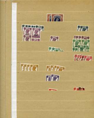 KG VI stock on manila stocksheets, main value in mint middle values with SG 88, 90 x 3, 91 x 3, 93 x 6, these mint, and SG O69 x 3 u/m. STC £225 u/m, £702 m/m, £51 fu