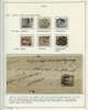1877-1901 small collection of nine used stamps on two pages, one cover (bearing 1a brown tied by multiple small pen-strokes, as well as violet boxed cancel) and one mint stamp; a seriously defective ¼a emerald-green, the redrawn type with wide margins. This is damaged at base, creased and with some foxing, but rare (SG 4, £1200)