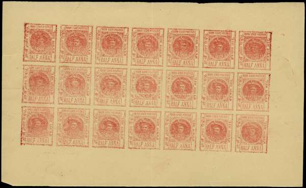 1901 ½a red unused sheet of twenty-one (7 x...