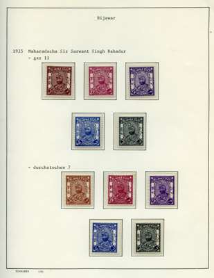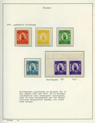 1935-7 mint collection on three album pages with 1935 perf 11 set, 1936 roulette 7 set (6p with foxed corner), hinged mint; 1935-6 9p both perf and rouletted sheets of six, unmounted o.g.; and 1937 o.g. set of five, the 1r in a corner pair with R1/2 '1Rs' variety, this pair hinged on the selvedge only. SG 1-15a, £552