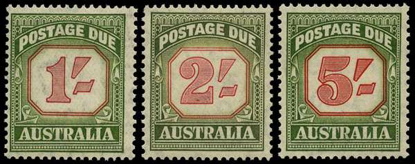 Postage Due. 1953-9 new design 1/-, 2/- and 5/-, the carmine and deep green shades, fine unmounted o.g. with the 2/- very scarce. SG 129a-131a, £450