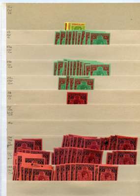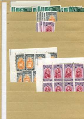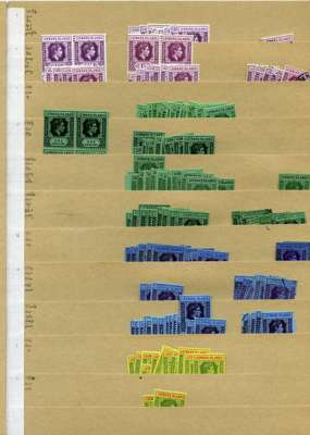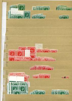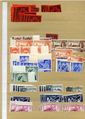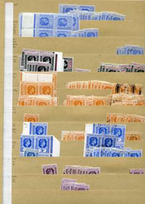 KG VI stock on manila stocksheets, strong range with considerable weight in better values; hinged mint includes SG 105 x 23, 107 x 20, 110bb x 10, 113 x 10, 113b x 13, 114a x 27, 114b x 38. U/m includes SG 114a x 8, 114b x 16 and c x 24; used includes SG 114a x 9. A clean lot, well worth inspection. STC £3031 u/m, £16447 m/m, £860 fu