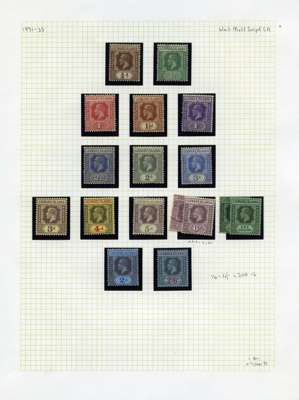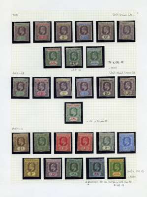 1890 to 1954 mint collection on leaves including 1890 to 5s, 1902 to 5s, 1905 to 1s, 1907 to 5s, 1912 to 5s (3) , 1938 to £1 (3), and 1954 to $4.80. Mixed condition with many good to fine (159)