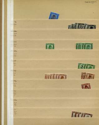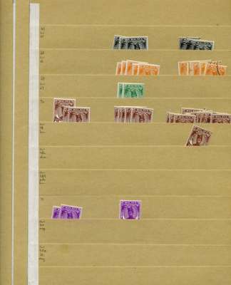 KG VI stock on manila stocksheets, some better values with SG 29 x 7, 34 x 5, D1-4 and D4 x 2 mint. STC £236 u/m, £1378 m/m, £297 fu