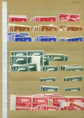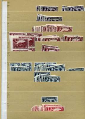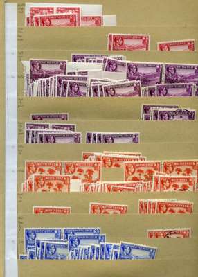 1937-52 KG VI stock on manila stocksheets, including shades per CW catalogue. Notable quantities of hinged mint better perfs (with natural streaky gum) including SG 103 x 28, 109 x 21, 110 x 17. STC £908 u/m, £6251 m/m, £215 fu