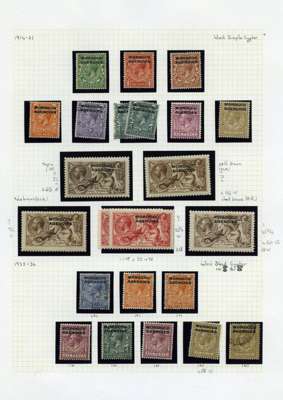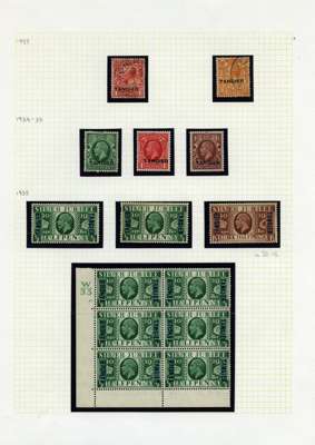 KEVII to QEII mainly mint collection on leaves including 1898 to 1p, 10c long tail to 'S', 25c inverted 'V' for 'A', 1903 to 2p, 1907 to 2s6d (2), 1914 seahorses 2s6d (4), 5s (2), 1935, 1949, 1951 to 5s, Spanish 1907 values to 1p on 10d, 1914 6p on 5s and 12p on 10s, French, Tangier 1949,1951 to 10s, 1949 to 10s used, 1957 to 10s in blocks of 4 used, Muscat 1944 to 2r, 1944 to 1r mint. Careful viewing will reward, a little mixed condition with many good to fine (hundreds)