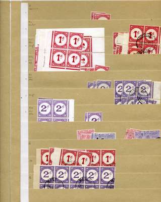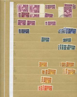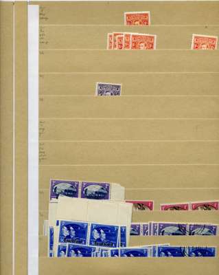 1937-51 KG VI mint and used stock on manila stocksheets. Pretty sparse apart from the Postage Dues, where there is a quantity of 1d and 2d on the wartime rough paper (SG D1-2) CTO'd in 1946. STC £248 u/m, £205 m/m, £1286 fu