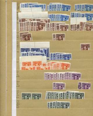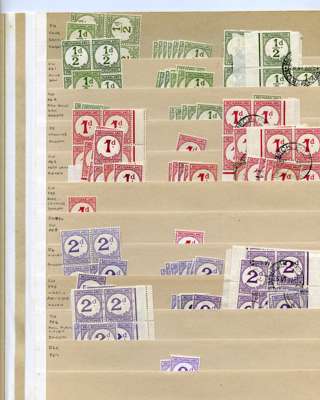 1937-51 KG VI mint and used stock on manila stocksheets. Quantity of some of the shades (per SG and/or CW) with lots of ½ds, the used sparse except for the Postage Dues, where there is a quantity of all three values on the wartime rough paper (SG D4-6) CTO'd in 1946. STC £851 u/m, £1659 m/m, £1264 fu