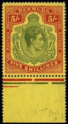 1941 (May) 5/- line perf, a fresh lower marginal example (#55) with large part o.g., fine. SG 118b, £275