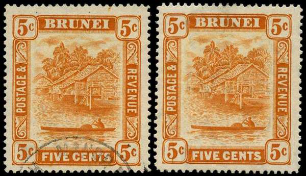 1947-51 5c orange variety '5c retouch'. Fine with part cds. Normal mint stamp for comparison. SG 82a