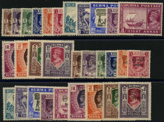 1946 colour change set of fifteen and 1947 Interim Government set of fifteen, fine unmounted o.g. SG 51-63, 68-82, £110