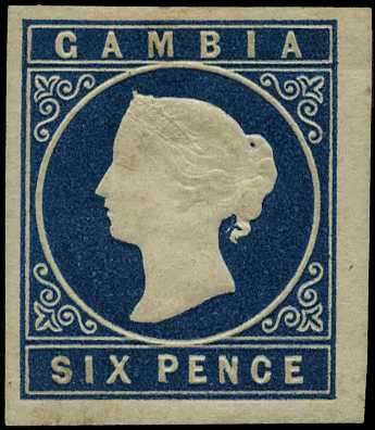 1869 6d deep blue, four good to large margins, large part o.g. with good embossing, very fine. SG 3