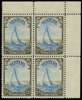 1938 2d light blue and sepia top right corner block of four, unmounted o.g., not an easy stamp in a block. SG 112, £200
