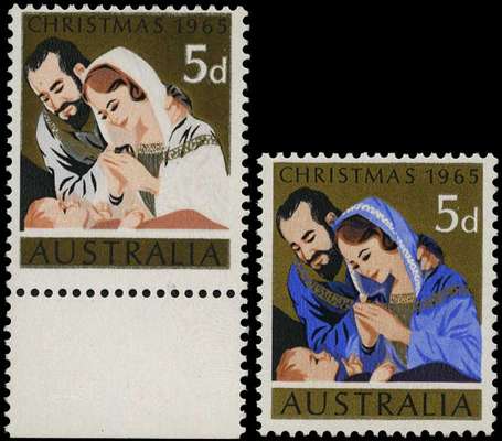 1965 Christmas 5d showing variety BLUE...