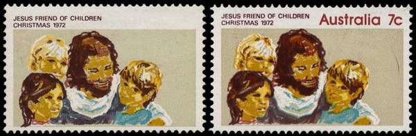 1972 Christmas 7ct showing variety RED-BROWN (Australia 7c) OMITTED, full unmounted o.g., very fine, offered with normal for comparison. SG 530b; BW 620cc