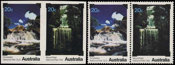 1979 National Parks 20ct variety IMPERFORATE (HORIZONTAL) PAIR, full unmounted o.g. Very fine, offered with normal pair for comparison. SG 713-714ab; BW 842-843