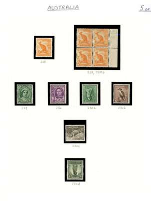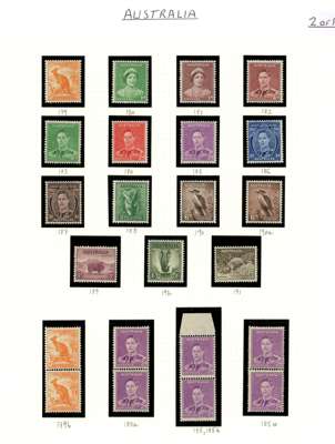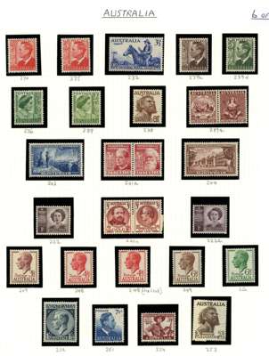 1937-56 mint collection (138 stamps) on leaves, basic stamps with extras, apparently all unmounted o.g. Includes 1937-49 definitives (both perfs, just one 3d blue in each perf), 2d purple coil pairs (two, one with inverted watermark, centred right), and vertical pair with medal flaw; 1950 ½d block with sky retouch, Dues with 1938 and 1946 sets. SG £1353