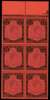 1951 £1 violet and black on scarlet paper, perf 13 top marginal block of six, #s 5-30 with relevant HFs, unmounted o.g. SG 121d, £330