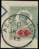 1887 2d green and carmine neatly tied to small paper piece by complete 23 mm code 'B' Ascension cds for 'JA 25 13' SG Z10 £350