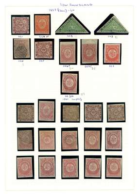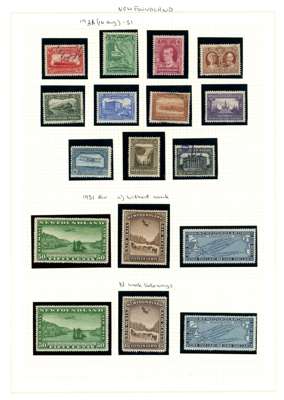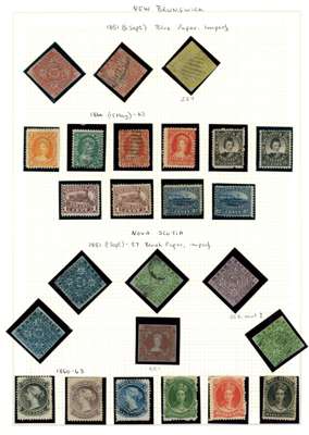 PROVINCES: 1851-1947 mixed mint and used collection arranged on Lighthouse album leaves including British Columbia and Vancouver Island, New Brunswick 1851-60 used 3d (2), 6d (four clear margins), 1860-63 values to 17c mint, Newfoundland with 1857-64 range to 1s, mostly unused/mint, 1865-70 range mint and used and mint, 1897 Discovery of Newfoundland to 60c (two sets), 1910 to 15c, 1911 to 15c, 1911-16 Coronation to 15c, 1919 Newfoundland Contingent to 36c, Air $1 on 15c, 1921 Air 35c, 1923-24 to 24c, 1929-31 Perkins, Bacon printing to 20c, 1931 Air to $1 (both types), 1932 Air Dornier $1.50 on $1, 1933 Air Balbo $4.50 on 75c, Nova Scotia used 1d, 3d (2), 6d (2), 1s, some with margins, and Prince Edward Island mainly mint selection. Condition mixed with many fine. (hundreds)