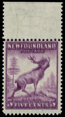 1941-4 Second Resources 5ct violet perf 12½ top marginal example, unmounted o.g., printed double. SG 280ac, £750