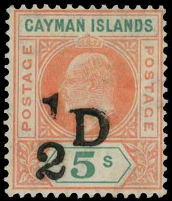 1907 ½D on 5/- salmon and green, large part...
