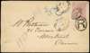 POSTAL HISTORY: 1898 Registered envelope to Montreal, Canada franked by 1r12 dull rose, tied by 'A' numeral and 'R' h/s, with Colombo Registered cds for JA 11, with London transit, backstamped by Montreal Canada arrival for FEB (??), attractive, with the 1r12 a scarce stamp on cover. SG 201