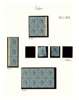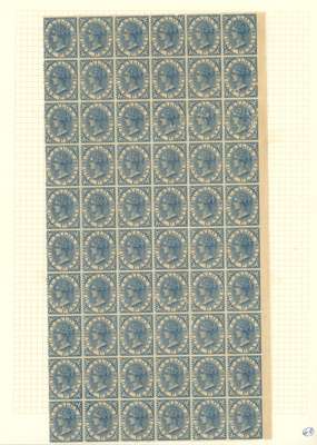 1866-68 watermark CC 1d blue (shades), wing marginal pane of 60, block of four, six, strip of three and two singles, mixed condition, still scarce multiples. SG 61