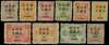 1897 Small figure surcharge spaced 3mm, on Dowager Empress first printing set of ten to 30cts on 24ca rose-carmine, large...