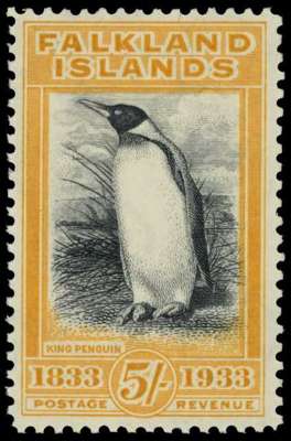 1933 Centenary 5/- black and yellow-orange ''King Penguin'', brilliant o.g; with the barest trace of hinging, a very fresh...
