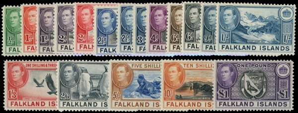 1938-50 set of eighteen to £1 black and violet, full unmounted o.g. (save for 1/- which is sadly mounted), still a very fine and fresh set. SG 146-163